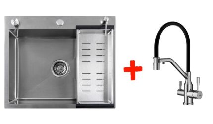 Мойка кухонная Futur FK 6050 Eco Embossing Pop-up Satin Mixer plus Splenka S70.62.05
