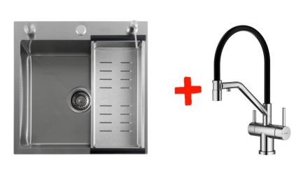 Мойка кухонная Futur FK 6050 Eco Embossing Pop-up (Satin) Mixer plus RAGLO R20.63.05 Сатин