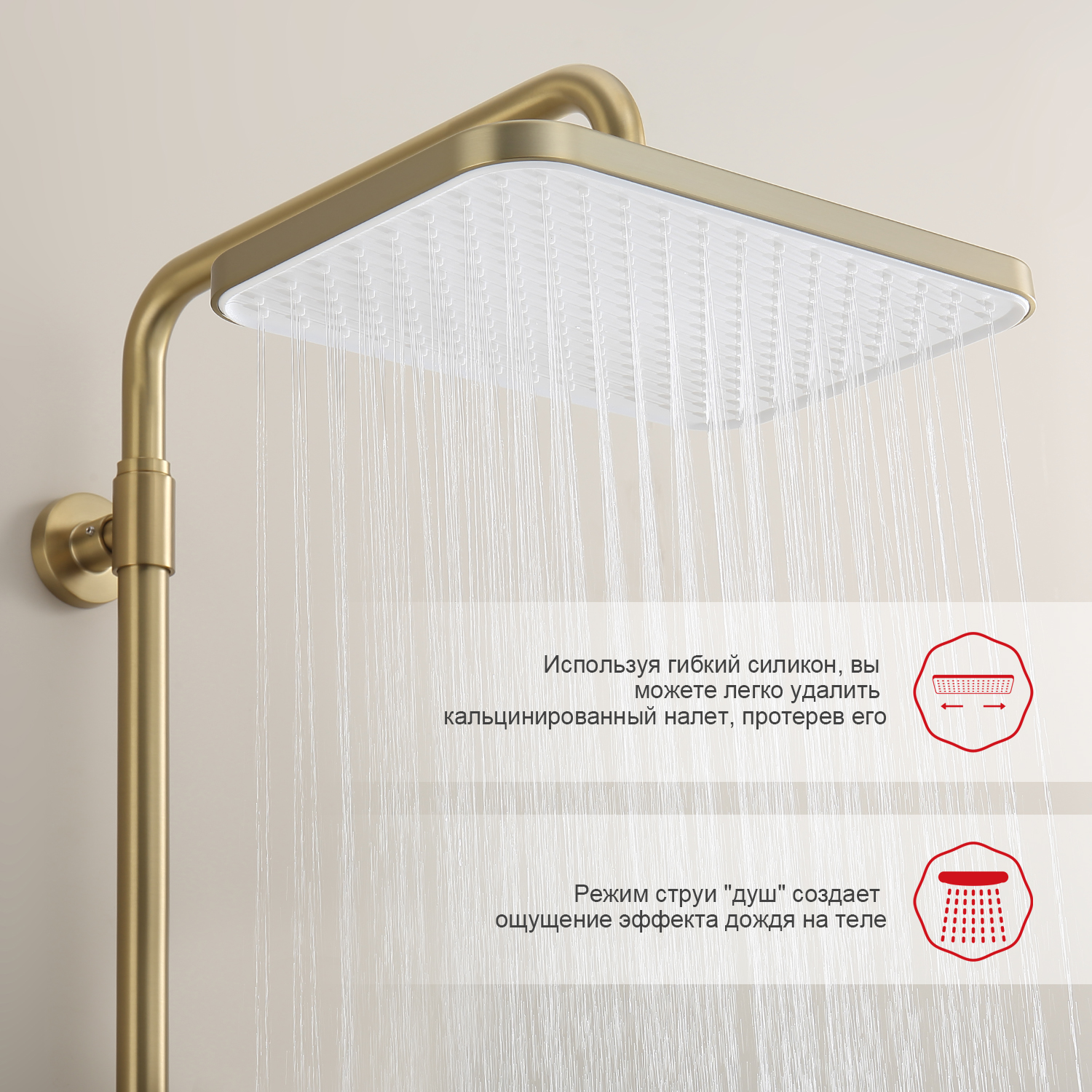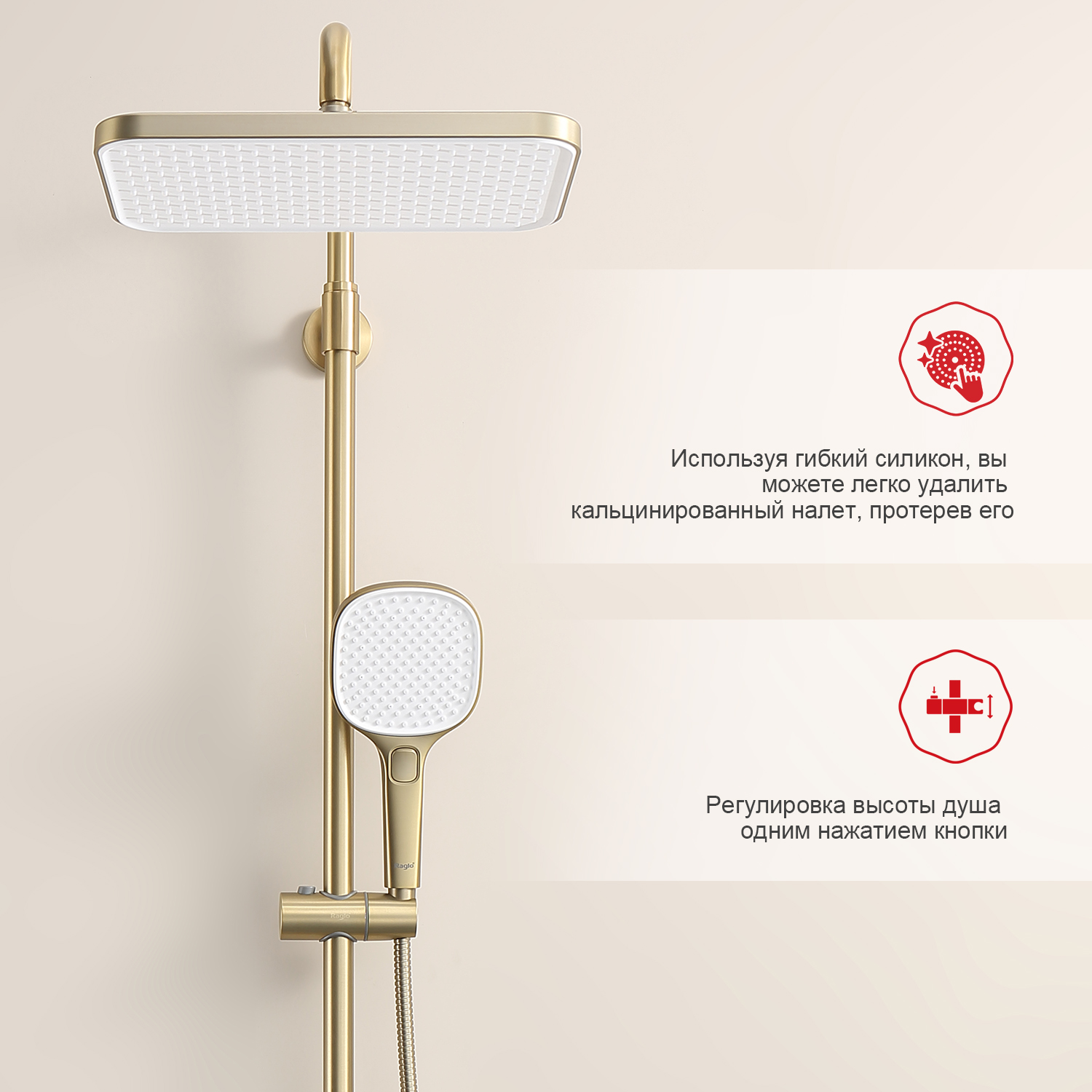 • Встраиваемая душевая система RAGLO Сатин Золотой