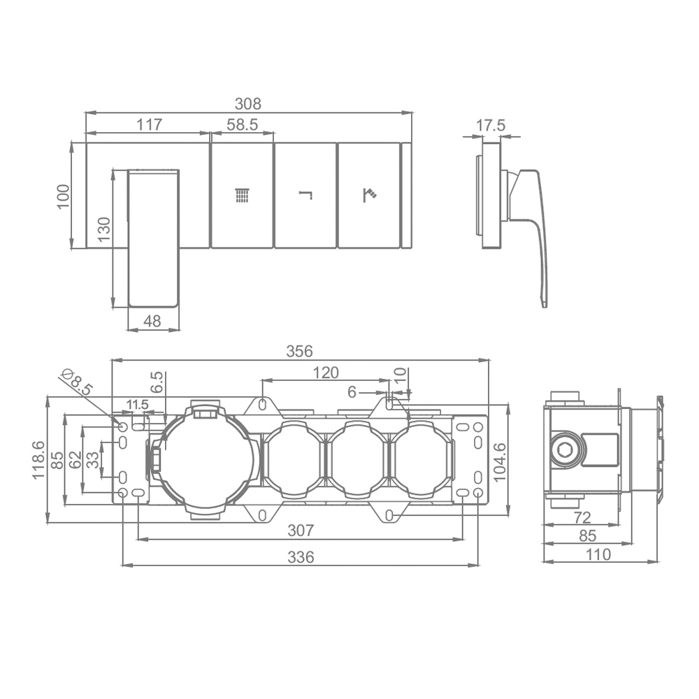 • Гигиенический душ Raglo со смесителем встраиваемый RAGLO Графит