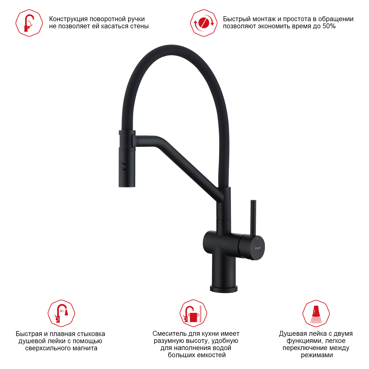 • Смесители для кухни Raglo без подключения к фильтру питьевой воды Чёрный
