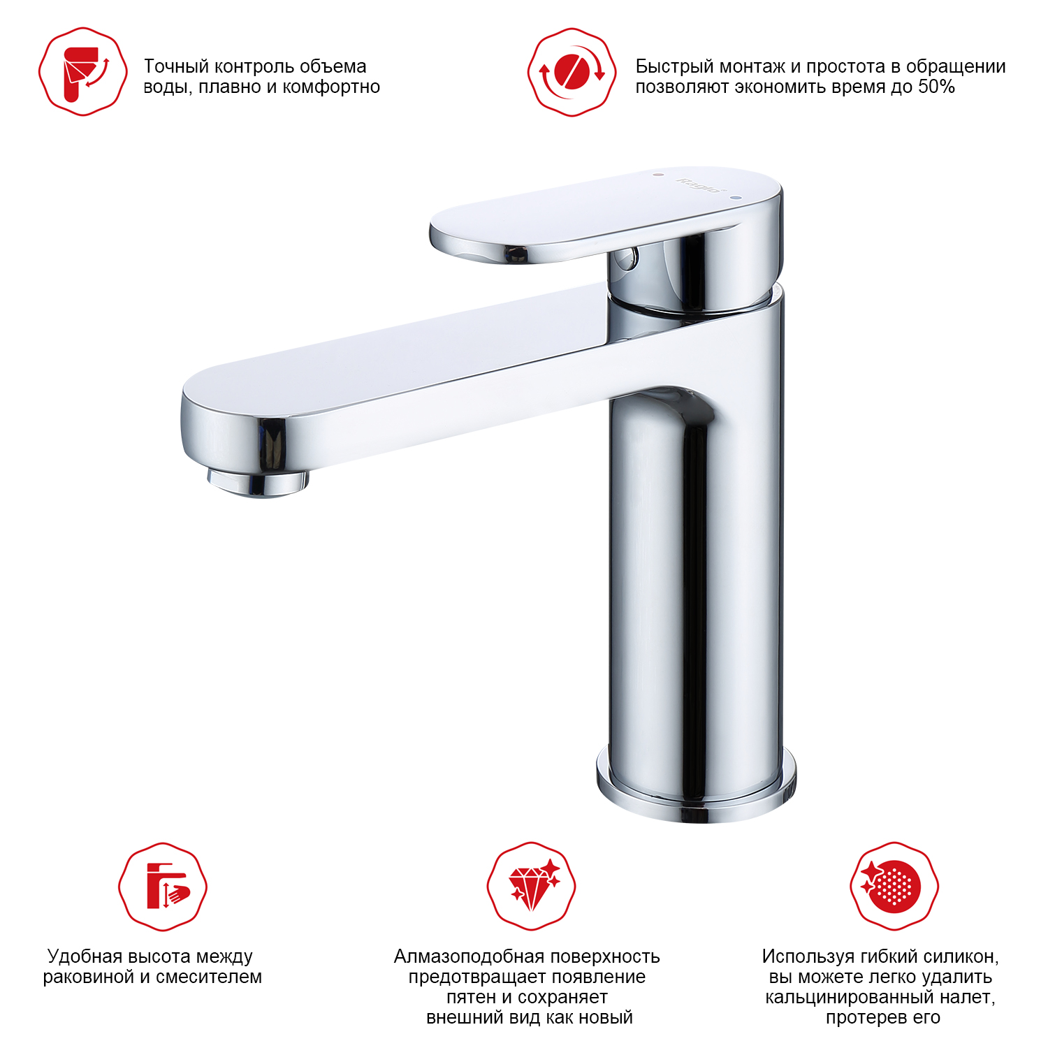 Смеситель для умывальника Raglo R50.10 — это элегантное решение для ванной комнаты. Модель в цвете хром и с привлекательными округлыми формами. Смеситель оснащен однорычажным управлением, что обеспечивает простоту и удобство в использовании. Керамический картридж гарантирует долговечность, а фиксированный излив со встроенным аэратором способствуют экономии воды. Идеально сочетает современный стиль и функциональность, делая его отличным выбором для любого интерьера.
